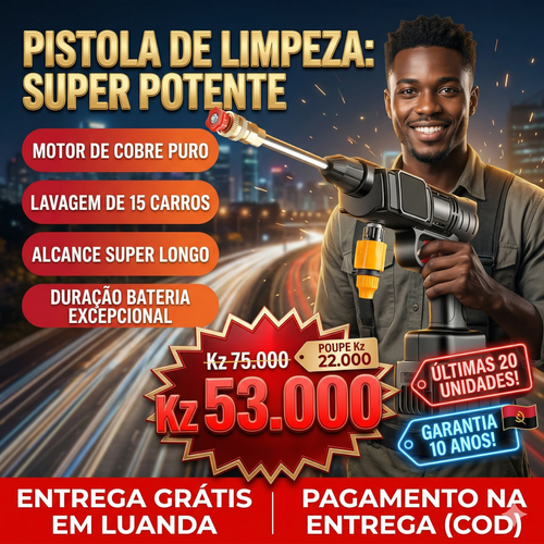 🚀 LAVADORA DE ALTA PRESSÃO SEM FIO: A SOLUÇÃO DEFINITIVA PARA LIMPEZA EM LUANDA! 🇦🇴💦 Liberte-se dos cabos com a nossa Pistola de Limpeza Super Potente de 60 Bar! 🔋 Equipada com motor de cobre puro e bateria de lítio de longa duração, é perfeita para lavar o carro, regar o jardim ou limpar o quintal com total versatilidade e rapidez. 🚗🏡 Inclui 3 bicos ajustáveis para jacto directo, leque ou espuma! 🧼✨